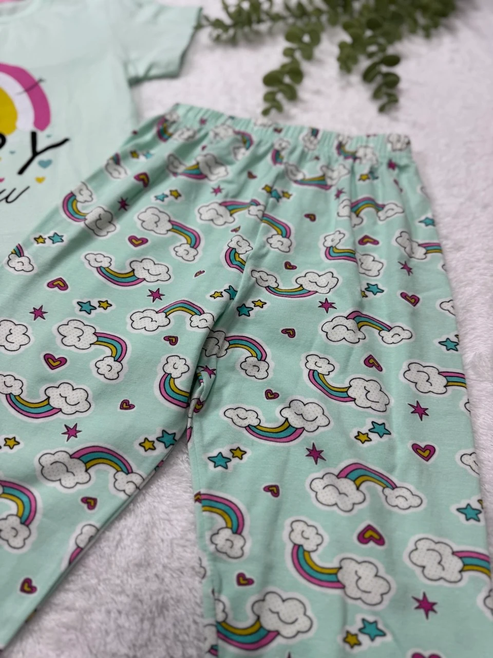 Kız Çocuk Su Yeşili %100 Pamuk Pijama Takımı
